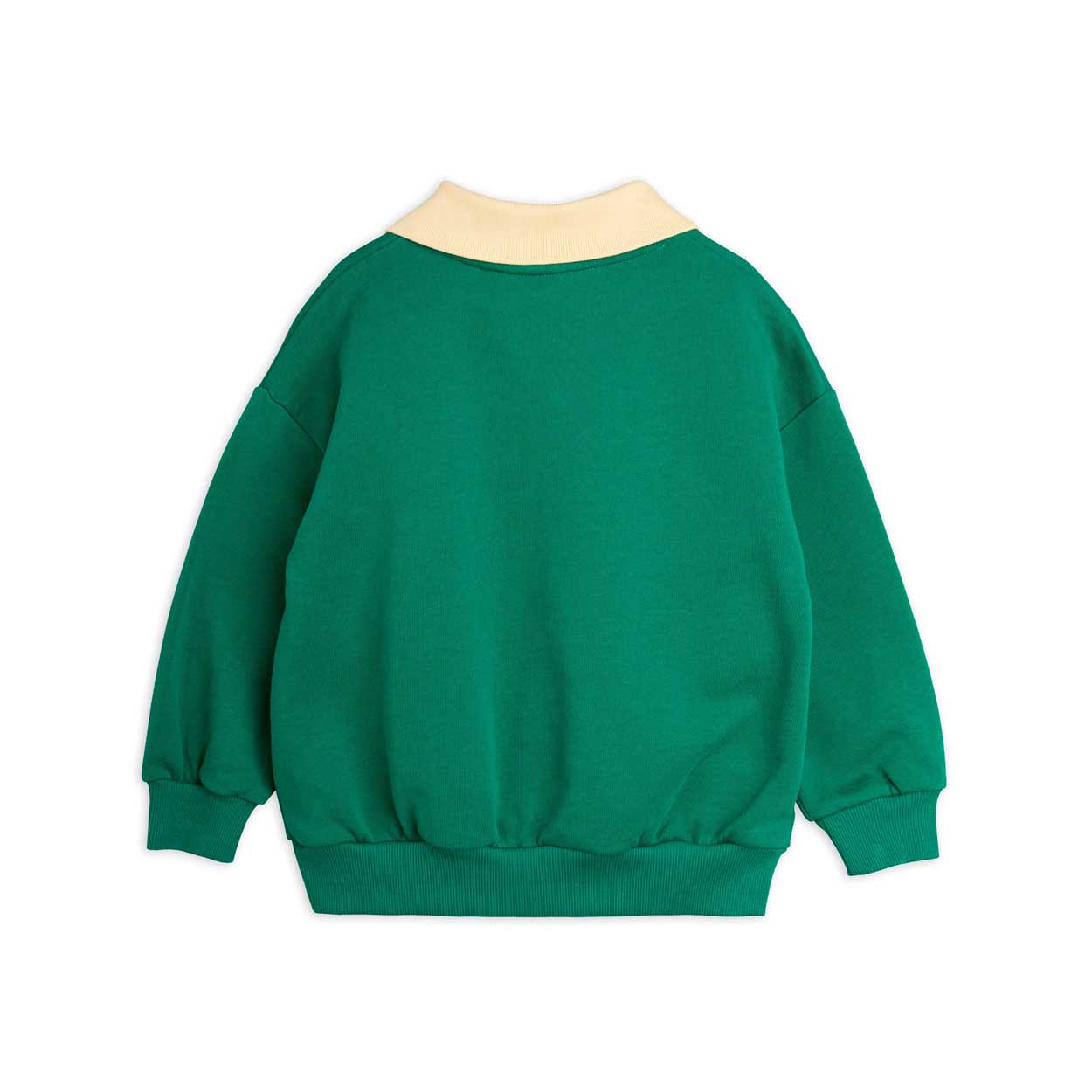 Sudadera infantil con estampado frontal. Cuello polo a contraste. Canalé en bocamanga y bajo.